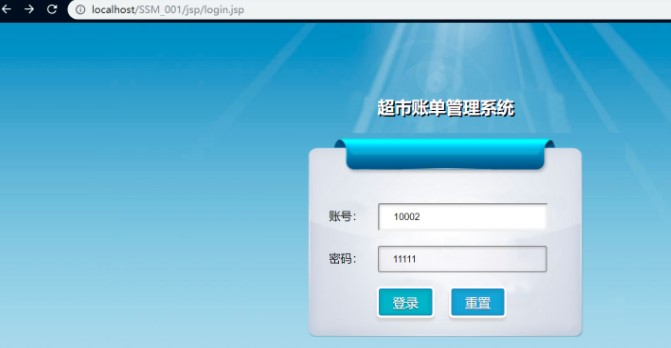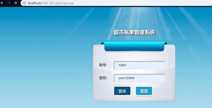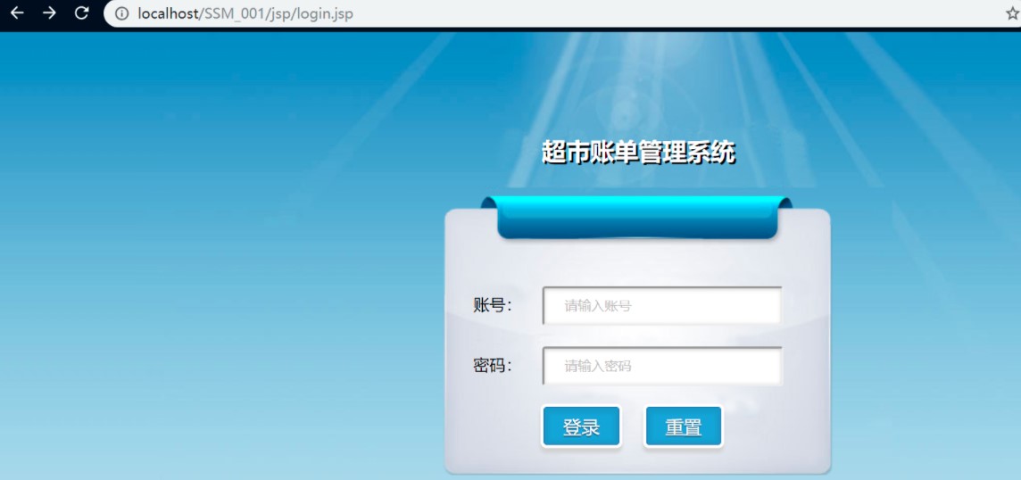 1.启动Tomcat服务器,打开浏览器,输入:http://localost/SSM_001/jsp/login.jsp
