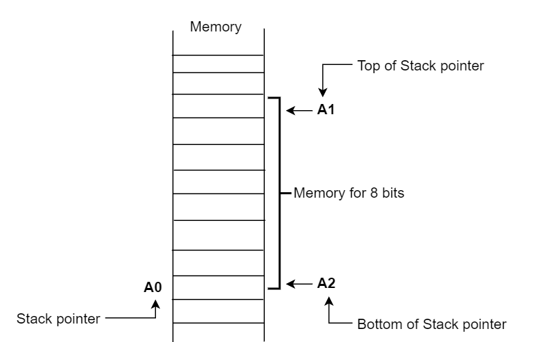 8085 中的堆栈遵循 LIFO 堆栈,最初将接收最后存储的数据。