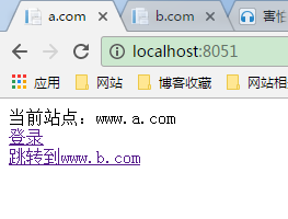 a.com和b.com中的跳转写cookie的方法代码如下:
