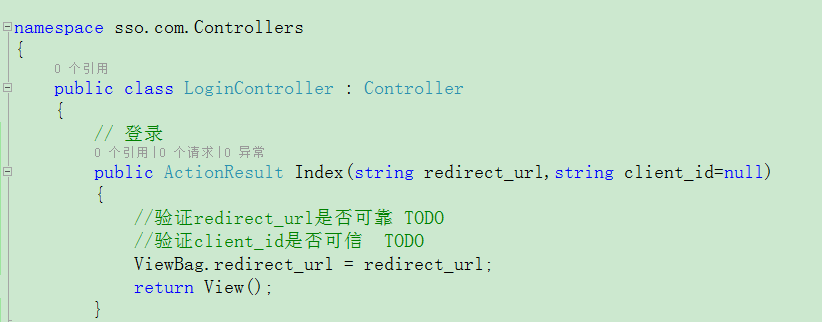 3.在a.com的首页点击登录按钮跳转到sso.com的登录页面(login/index)