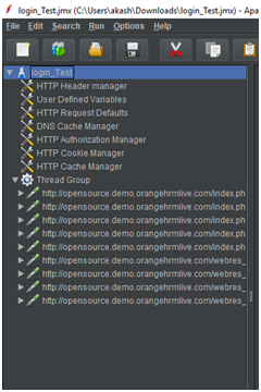 下图显示导入login_Test.jmx文件后Login Test节点的目录结构。