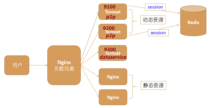 我们将上一个阶段的p2p项目实现集群部署下的Session共享,因为我们只是演示Session共享,所以我们试用一个简易版本的p2p,在我给大家提供的资料中,该p2p中只包含p2p和dataservice,在Linux服务器上,我们准备三台tomcat,其中两台部署p2p,并实现session共享,另一台部署dataservice。
