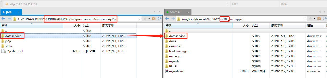 ② 使用Xftp将dataservice上传到tomcat9300的webapps目录下