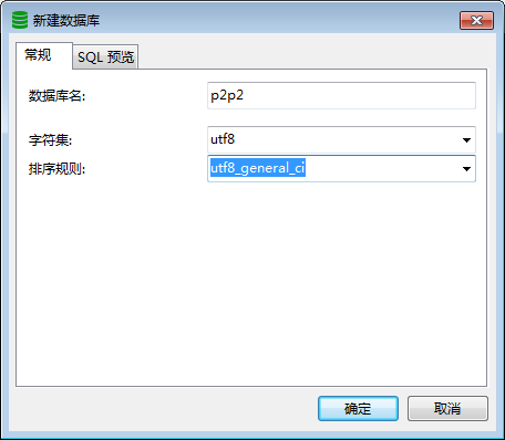 C、 指定数据库名字为p2p2,字符集编码为utf-8