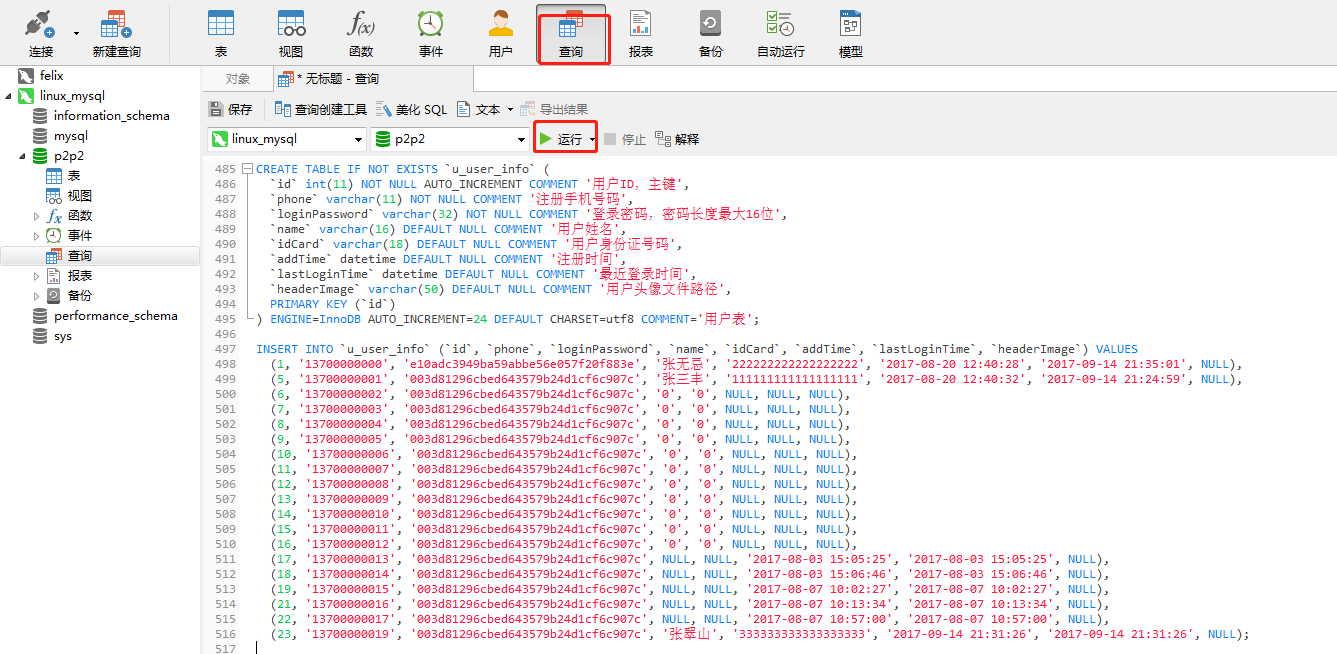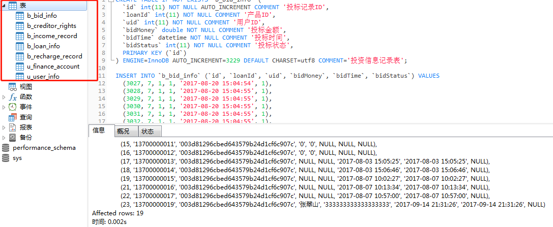 因为目前这个p2p的项目表结构和上一个阶段的稍微有些区别,所以我们这里更新一下: