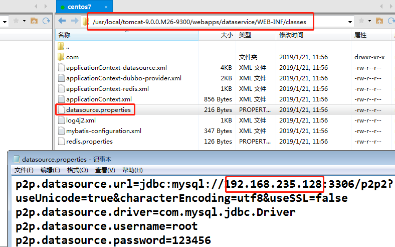 ⑥ 通过Xftp工具连接Linux,修改tomcat9200下的p2p的连接信息