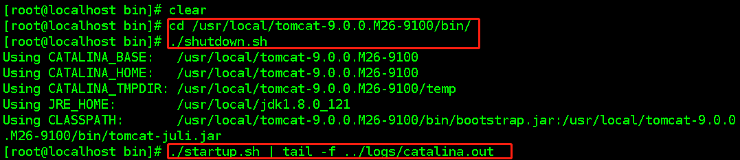 E、 启动tomcat9100服务器(为了避免出错先关闭,再启动)