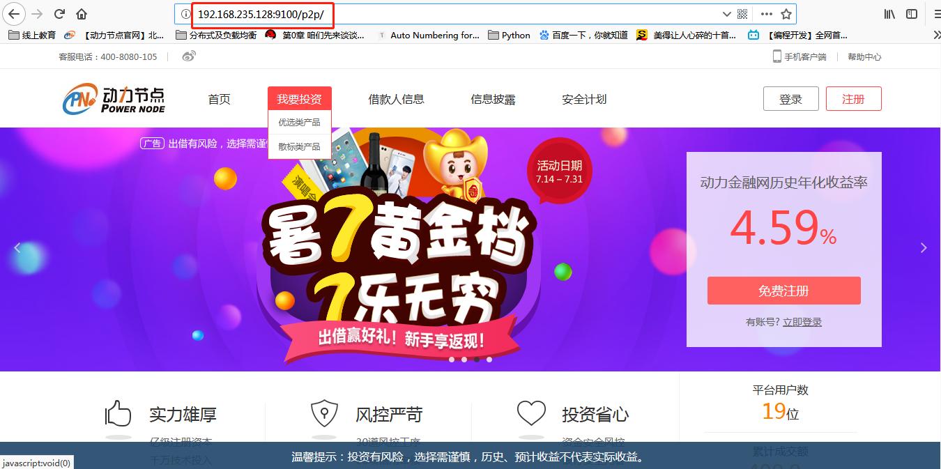 ⑩ 在浏览器中访问tomcat9100(p2p),设置session