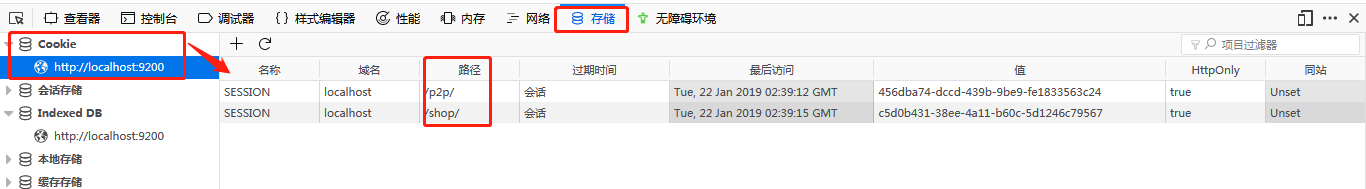 在01-springsession-web项目的基础上,将本地tomcat9100的上下文根修改为p2p,将本地tomcat9200的上下文根修改为shop;在本机host文件中修改127.0.0.1的映射关系模拟不同的域名访问。