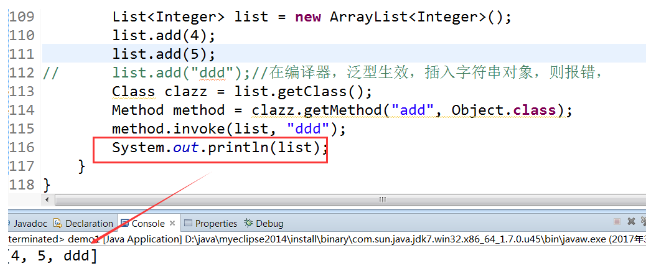 3.1、利用反射,在泛型为int的arryaList集合中存放一个String类型的对象