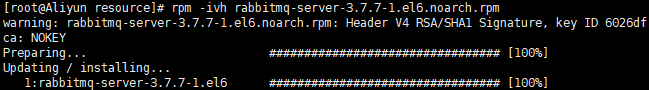 [root@Aliyun resource]# rpm -ivh rabbitmq-server-3.7.7-1.el6.noarch.rpm