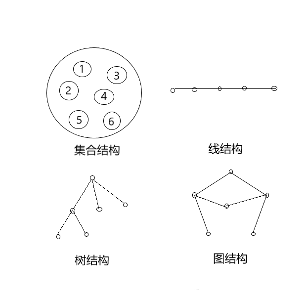 集合结构:集合结构里面的元素关系是孤立的,仅同属于相同的集合。
