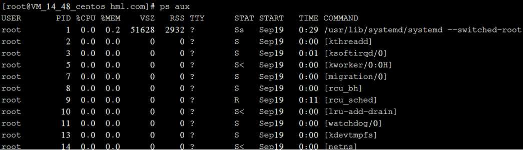 STAT:显示了进程当前的状态,如S(休眠)、R(运行)、Z(僵死)、<(高优先级)、N(低优先级)、s(父进程)、+(前台进程)。对处于僵死状态的进程应予以手动终止。
