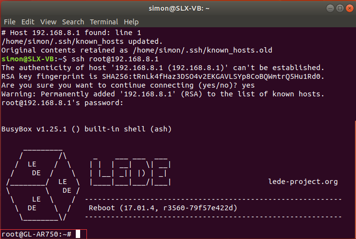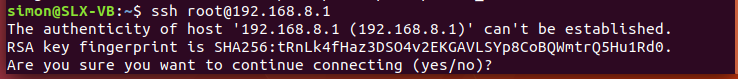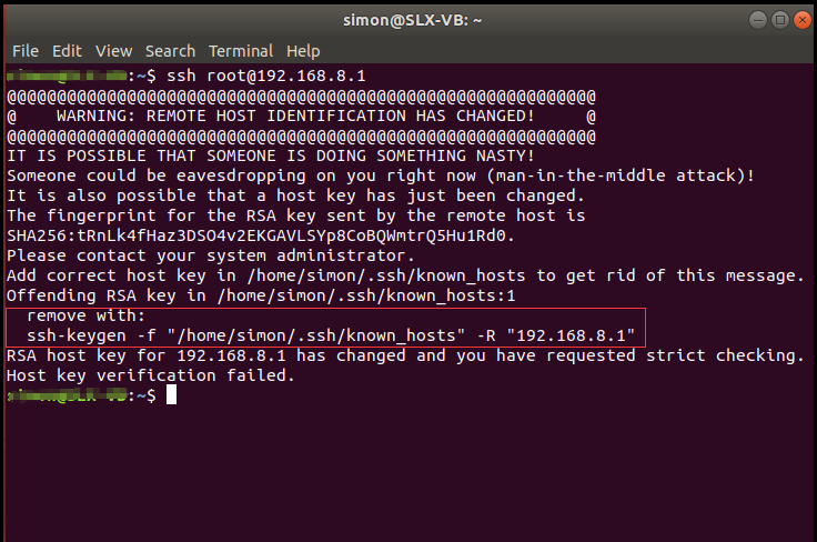 如果您曾经连接到另一个路由器,主机密钥验证失败可能会显示如下:
