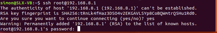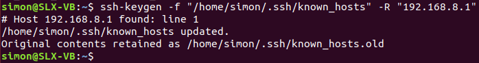 ssh-kengen -f "~/.ssh/known_hosts" -R "192.168.8.1"