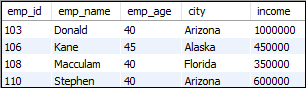 让我们首先创建一个名为“ employee ”的表,其中包含以下数据: