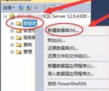 1.打开电脑SQL界面,点击数据库选项,在子菜单中点击新建数据库选项。