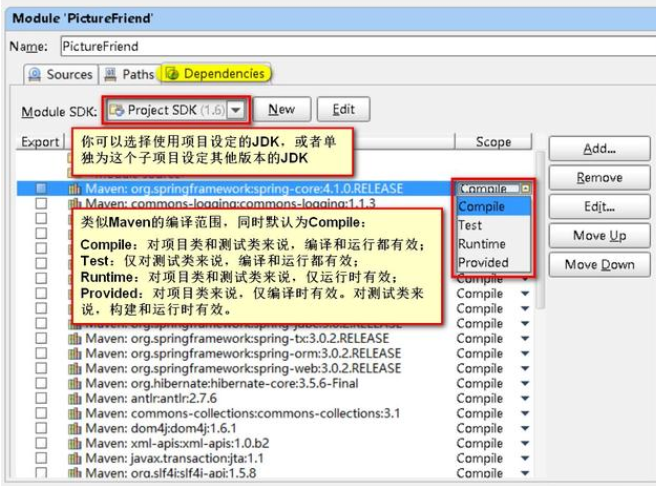 每个子项目之下都可以定义它所使用的框架,这里重点说明一下Web部分的设置。