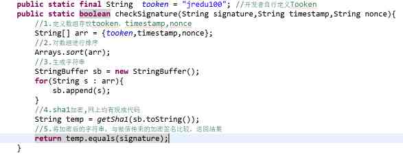 if(CheckUtil.checkSignature(signature, timestamp, nonce)){