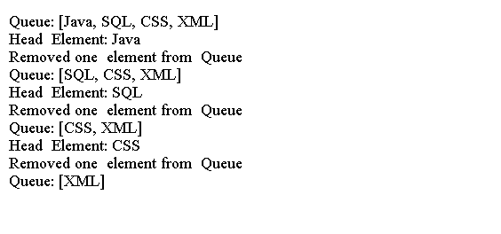 在简单队列中,对象被添加到尾部并从头部删除并首先删除首先添加的对象。