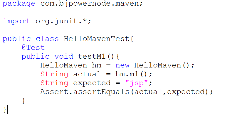 第一步:在 D:\course\javaProjects\22-maven\maven-01\src\test\java\com\bjpowernode\maven 目录下新建 HelloMavenTest.java 源文件